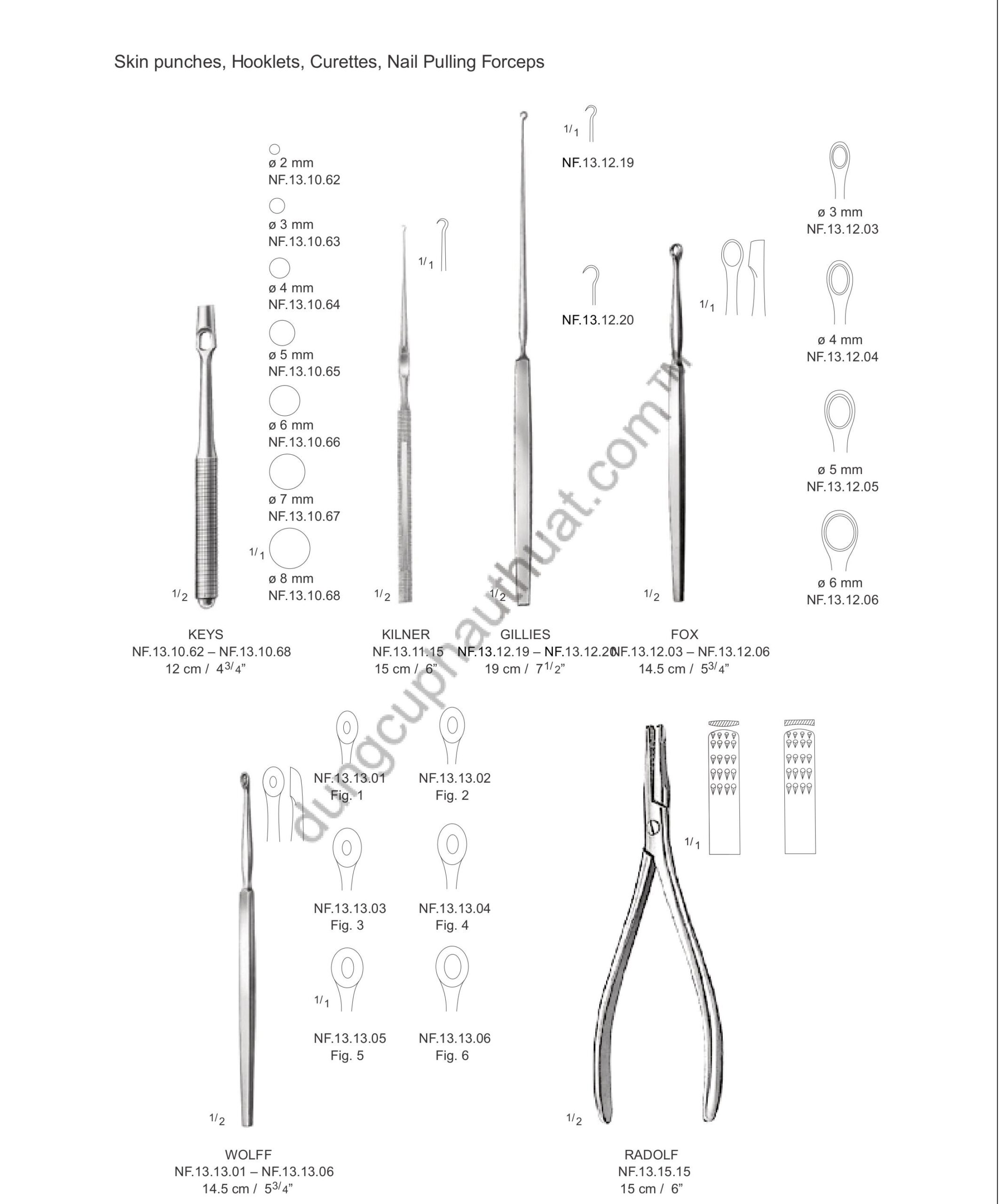 Dụng Cụ Wolff: Thường liên quan đến các loại kẹp lấy mảnh da (skin graft forceps) hoặc dụng cụ đo lường trong cấy ghép da.