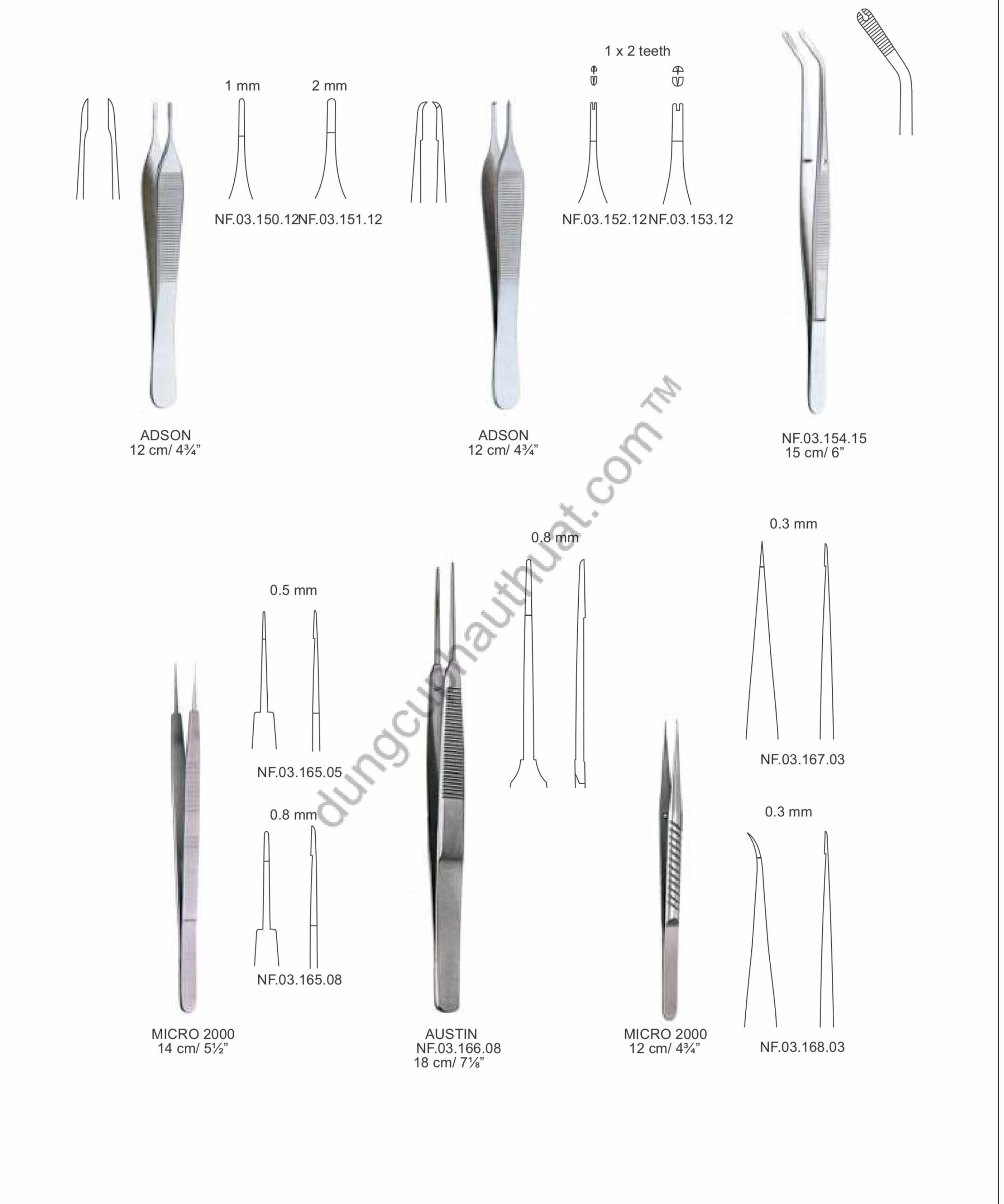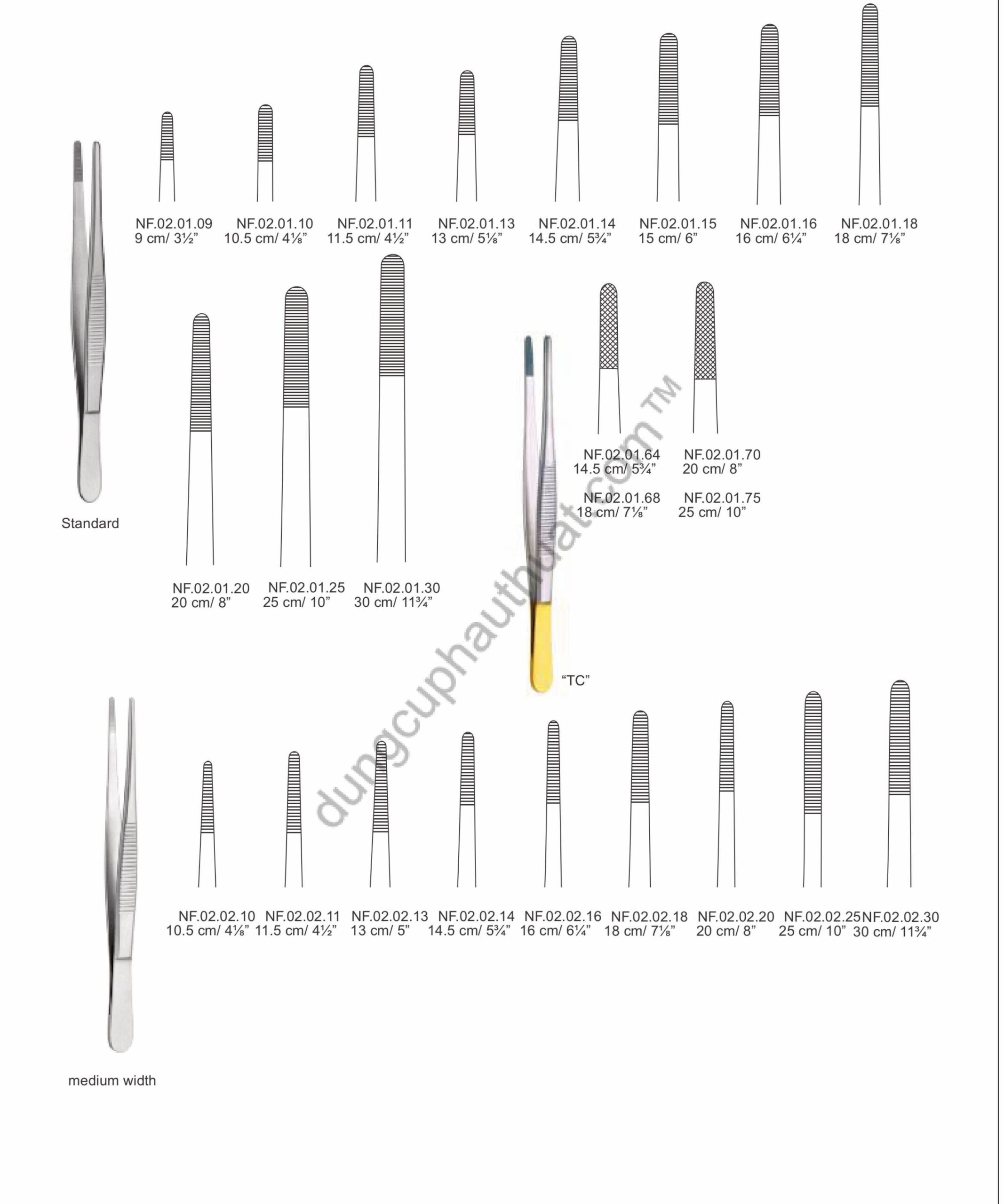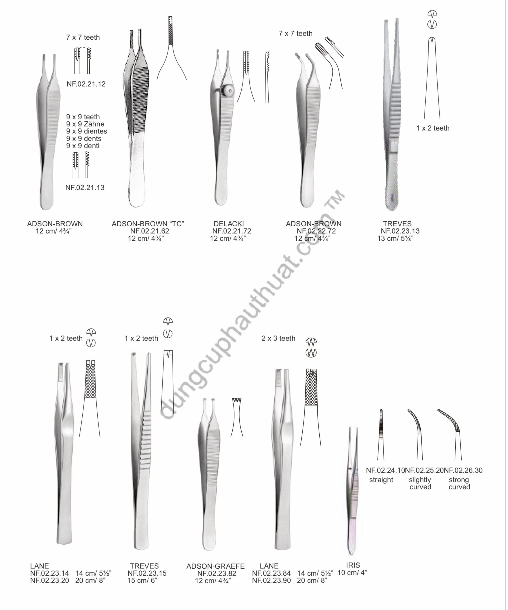 Đây là những loại kẹp phẫu tích tiêu chuẩn và đa năng có mặt trong hầu hết các bộ dụng cụ phẫu thuật: