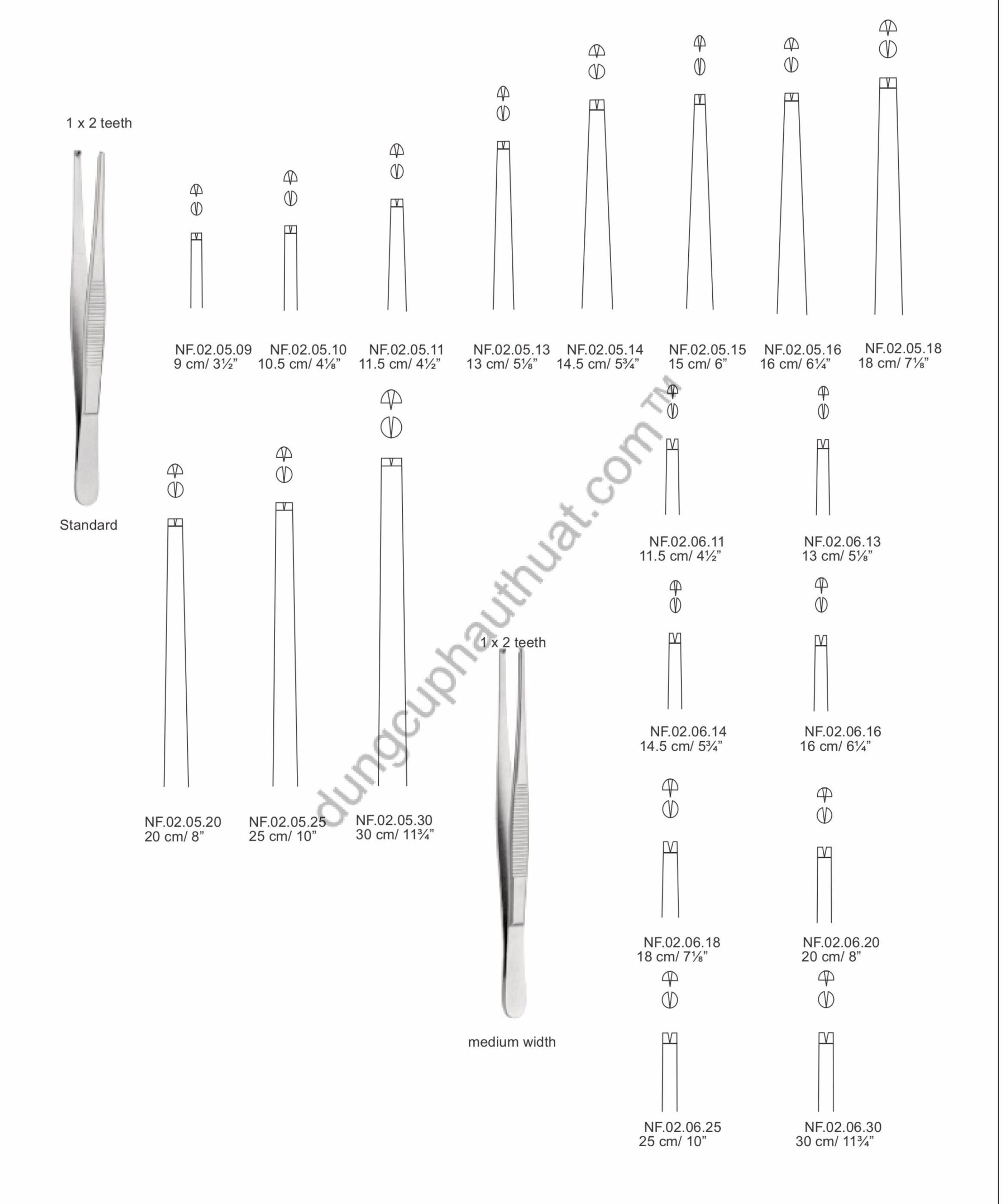 Kẹp Phẫu Tích Standard (Nỉa Standard) Kẹp tiêu chuẩn với các kích thước từ 10cm đến 30cm