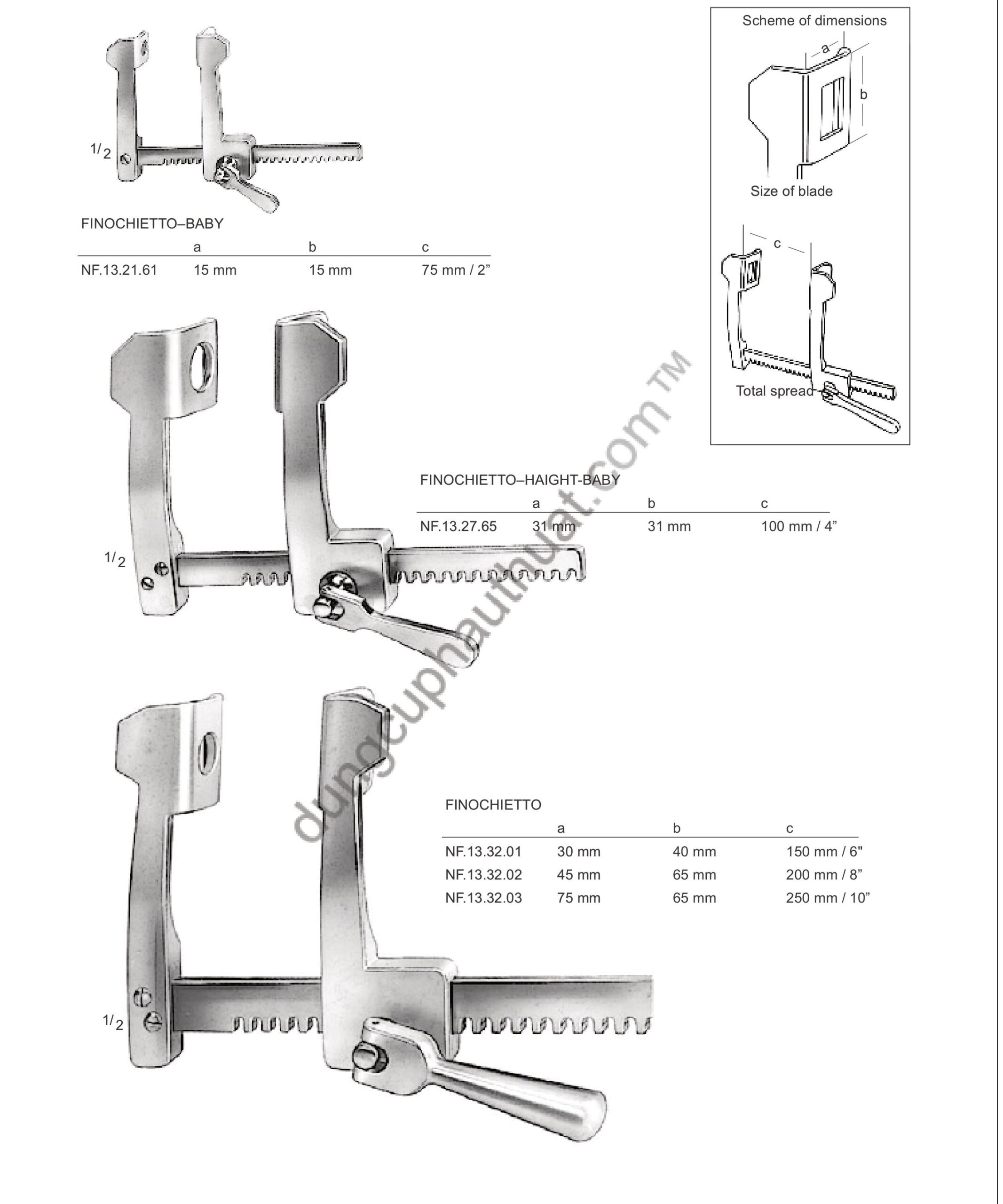 Bản Finochietto – Baby có kích thước nhỏ hơn, dành cho nhi khoa hoặc phẫu thuật lồng ngực tinh tế.