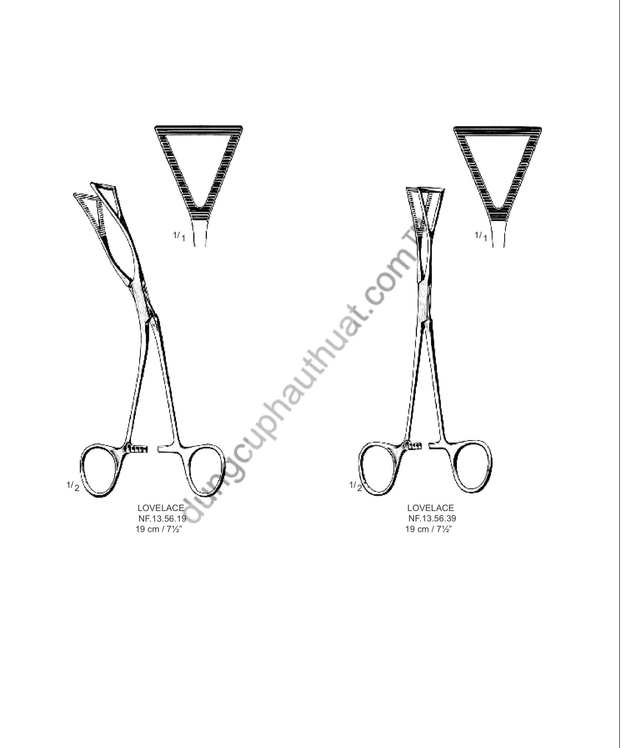 Dụng Cụ Lovelace: Kẹp phổi có đầu rộng, hình tam giác với răng mịn, dùng để kẹp và giữ nhu mô phổi một cách nhẹ nhàng nhưng chắc chắn.