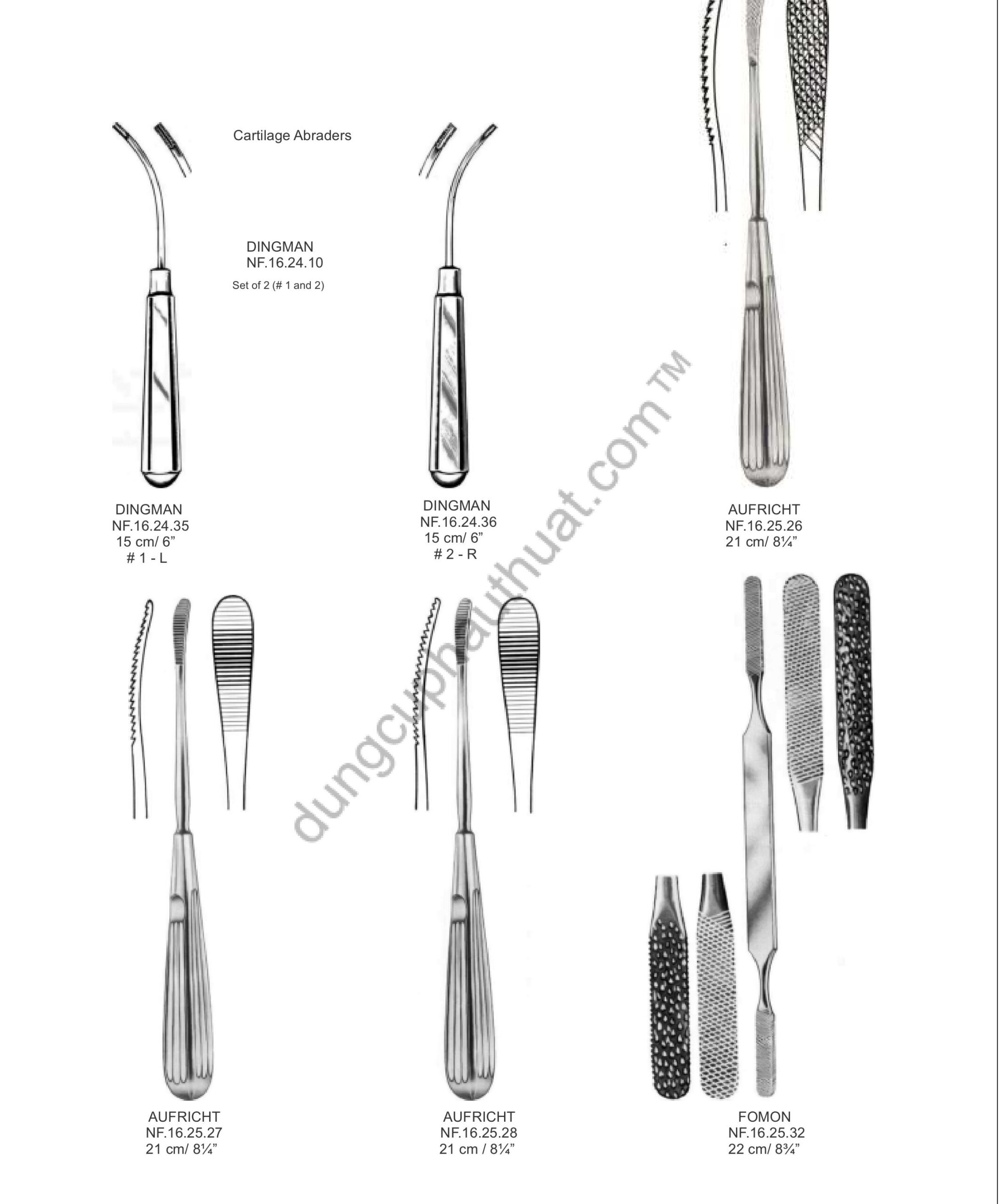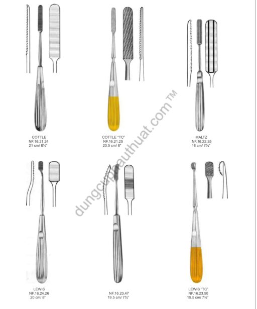 Dụng Cụ Mũi Dũa xương (Files / Rasps): Lewis, Maltz, Masing, Cottle-Fomon, Aufricht-Walter.