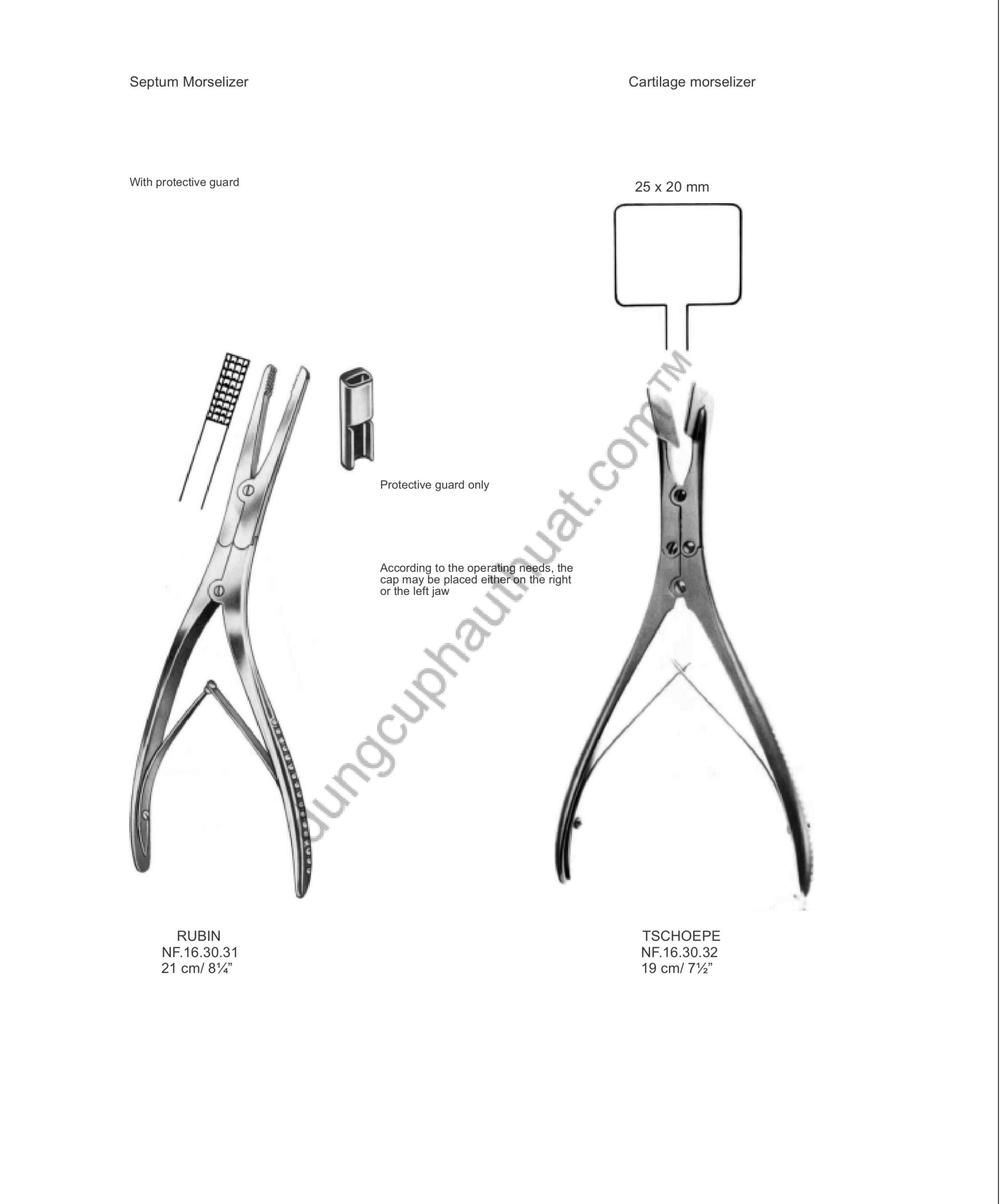 Dụng Cụ Septum Morselizer with protective guard: Dụng cụ nghiền sụn có tấm bảo vệ để kiểm soát lực ép, tránh làm nát vụn sụn.