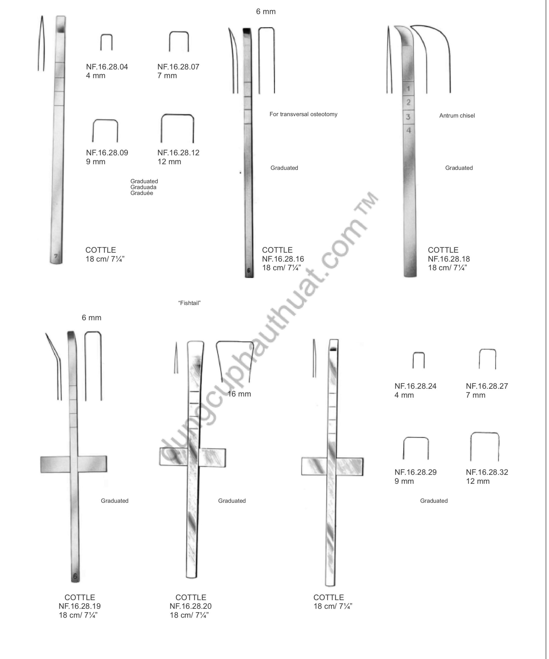 Dụng Cụ Cottle-Fomon Dismountable: Dòng đục hoặc dũa có thể tháo rời, dùng để tạo hình sống mũi và đầu mũi.