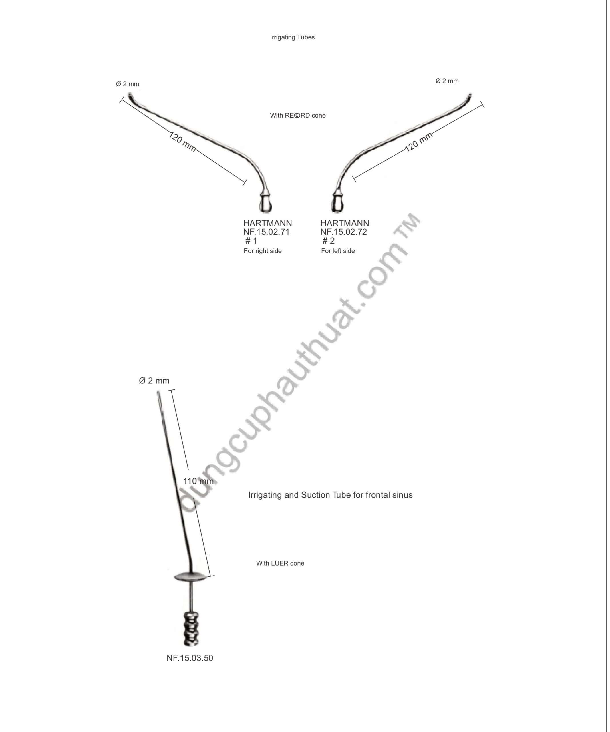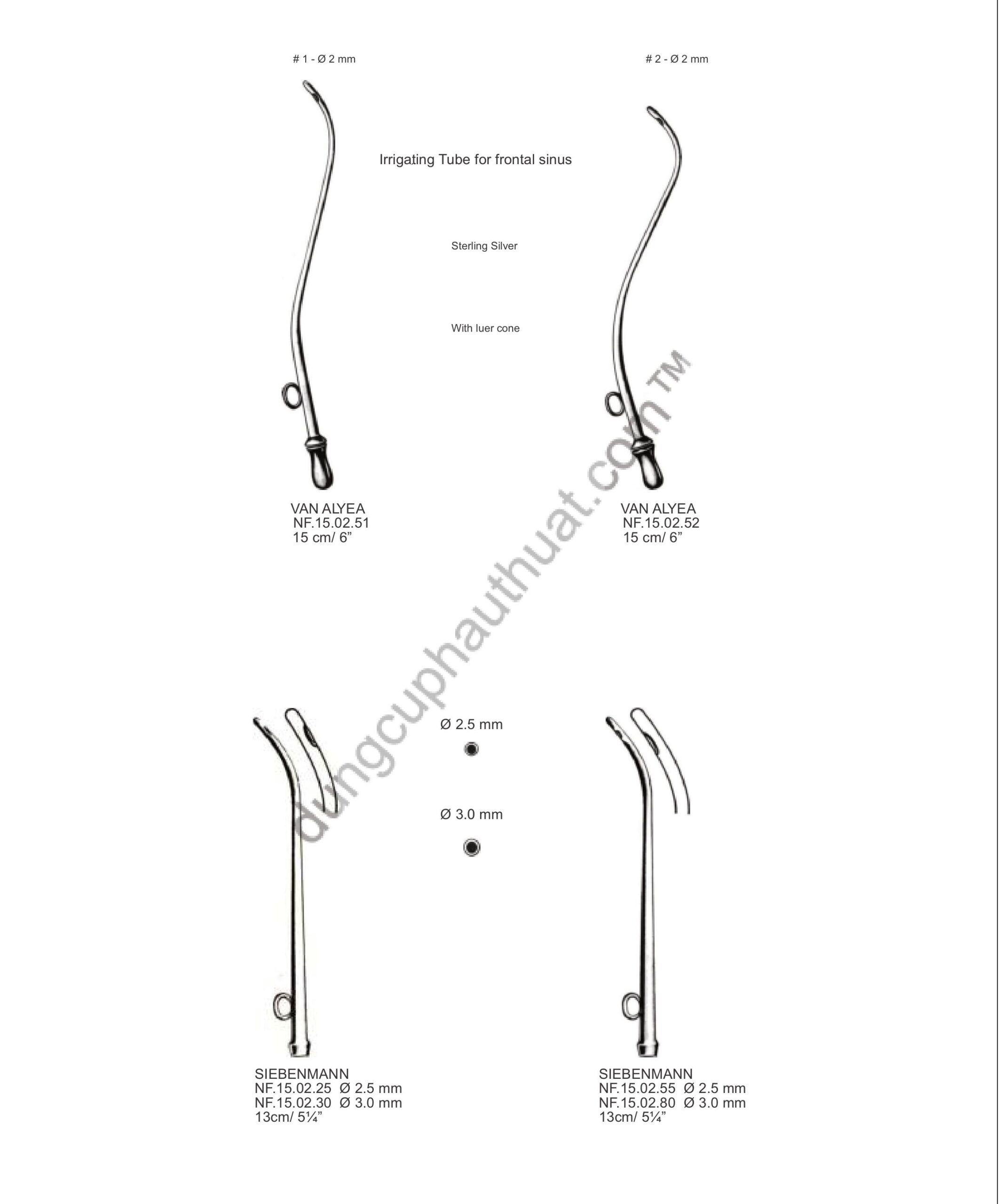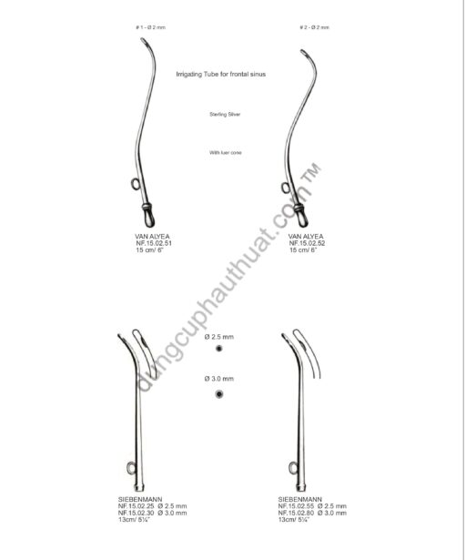 Dụng Cụ Thông và Bơm rửa: Eicken, Killian, Van Alyea (với đầu nối Luer cone hoặc Record cone để gắn bơm tiêm).