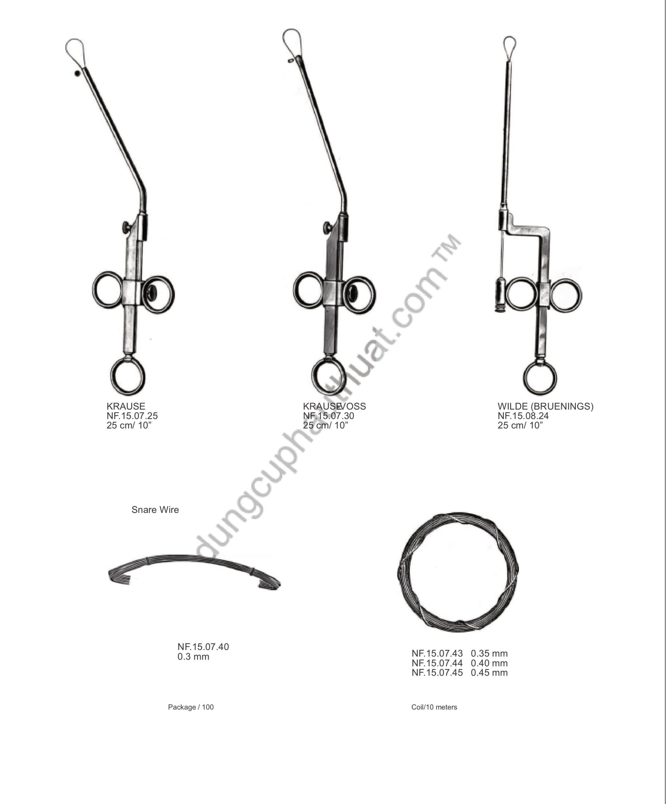 Dụng Cụ Dây thắt (Snare): Krause, Krause Voss, Wilde Bruenings (thường dùng cắt polyp mũi).