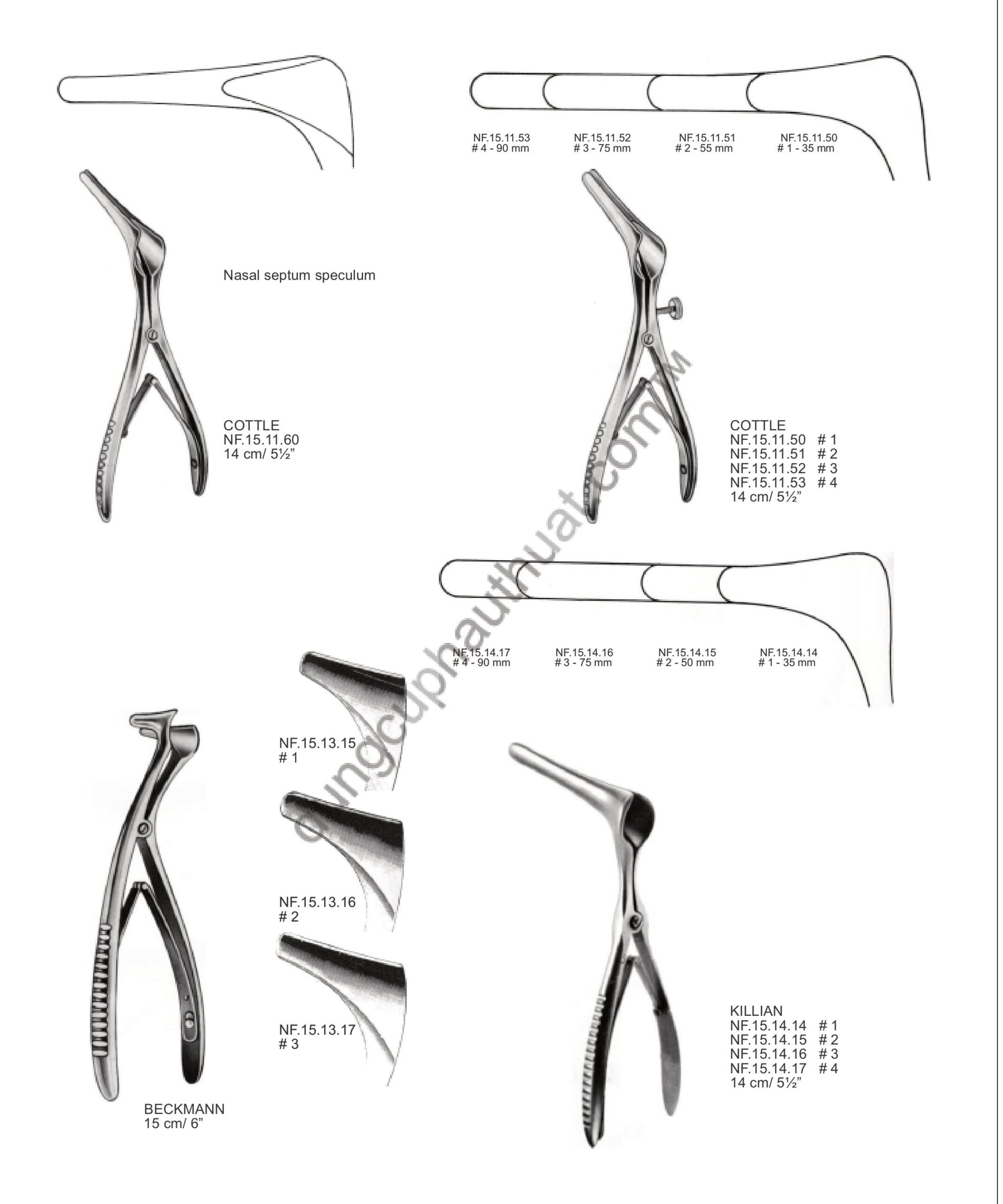 Dụng Cụ Killian: Thiết kế tiêu chuẩn cho phẫu thuật vách ngăn, có nhiều độ dài cành khác nhau.