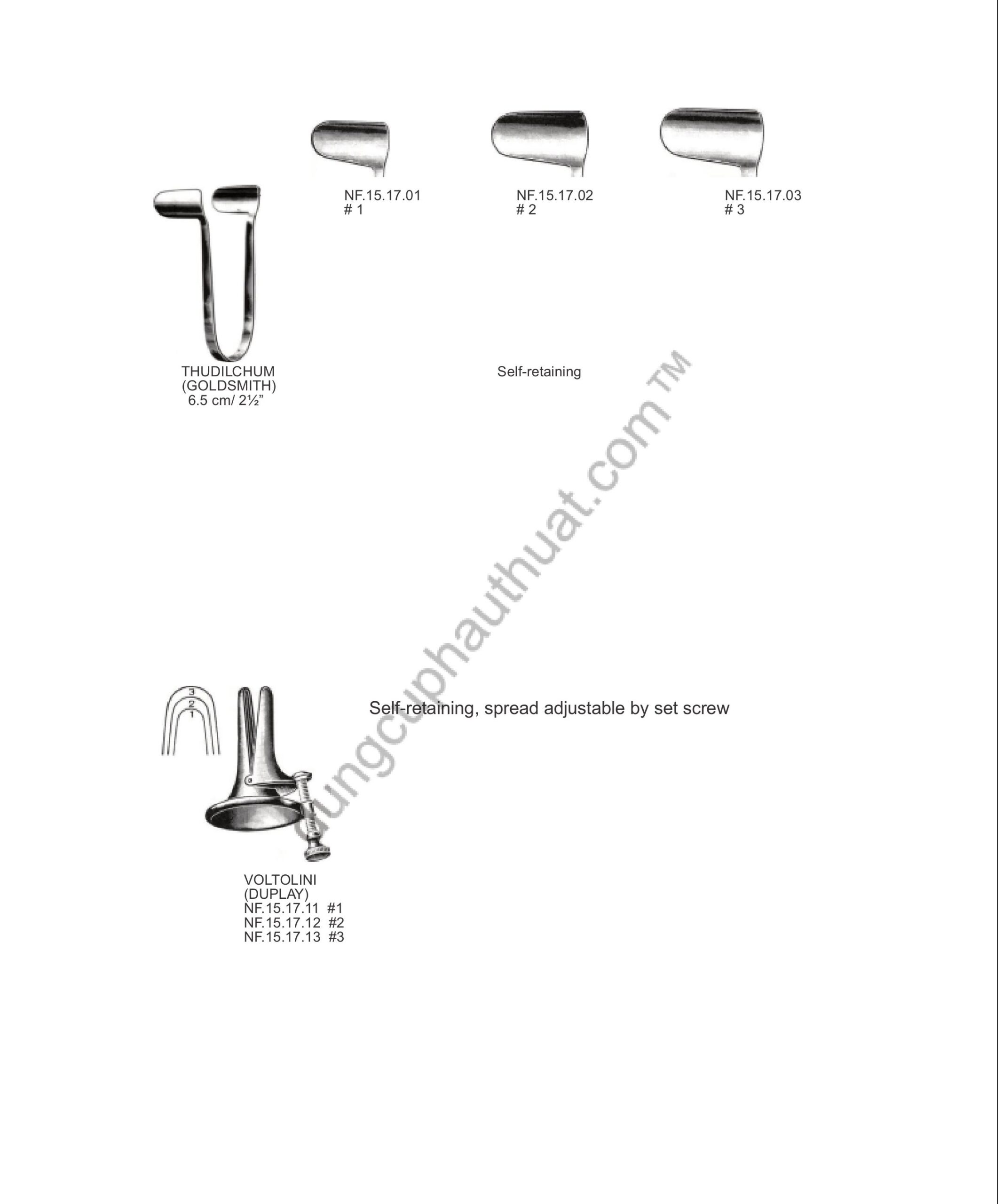 Dụng Cụ Thudichum / Voltolini: Dạng tự giữ (self-retaining), giải phóng tay cho phẫu thuật viên.