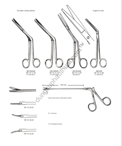 Dụng Cụ Kéo cắt niêm mạc: Heymann (lưỡi có răng cưa giúp chống trượt khi cắt mô trơn).