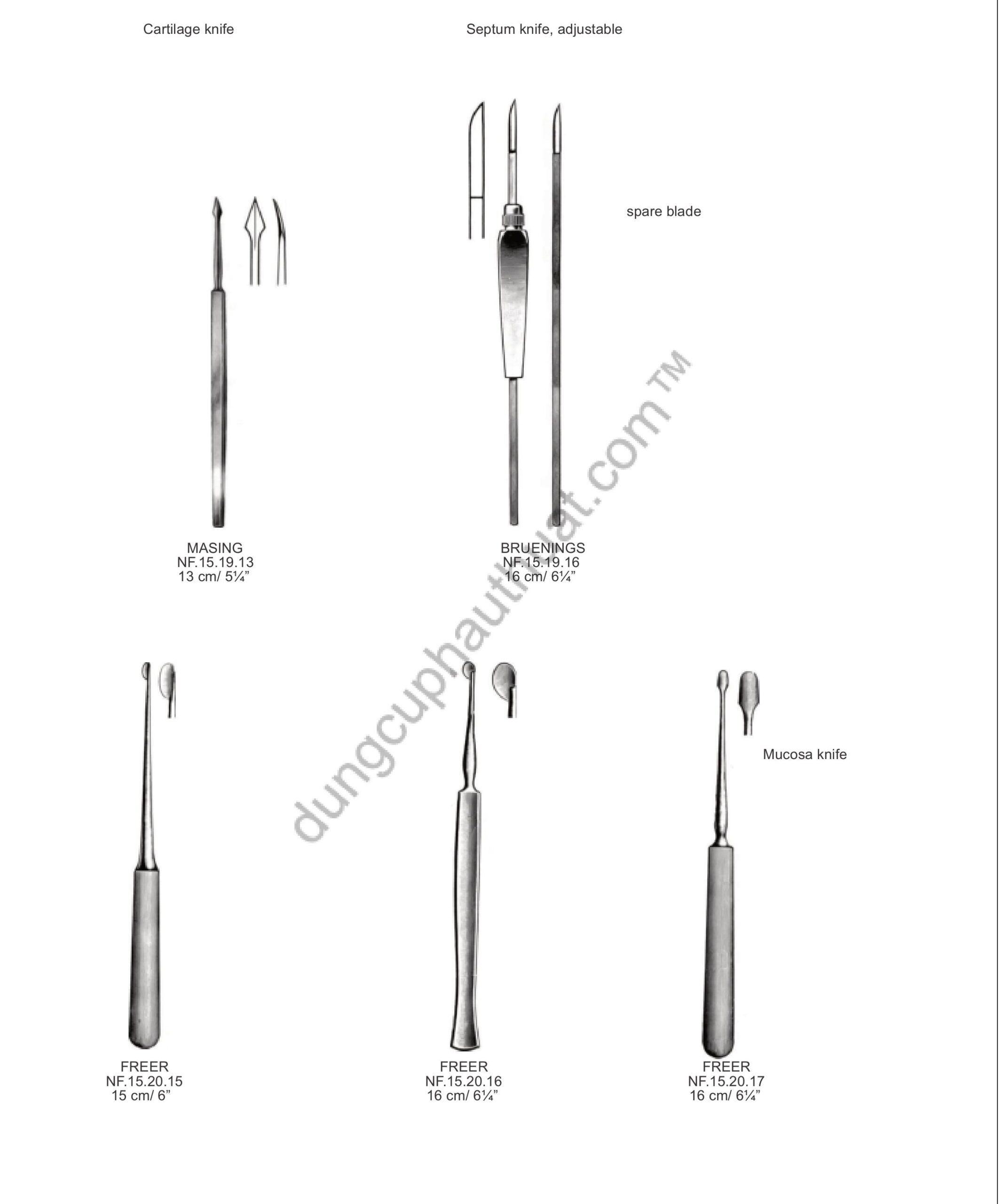 Dụng Cụ Cottle / Joseph / Freer: Các loại dao chuyên dụng để rạch niêm mạc vách ngăn.