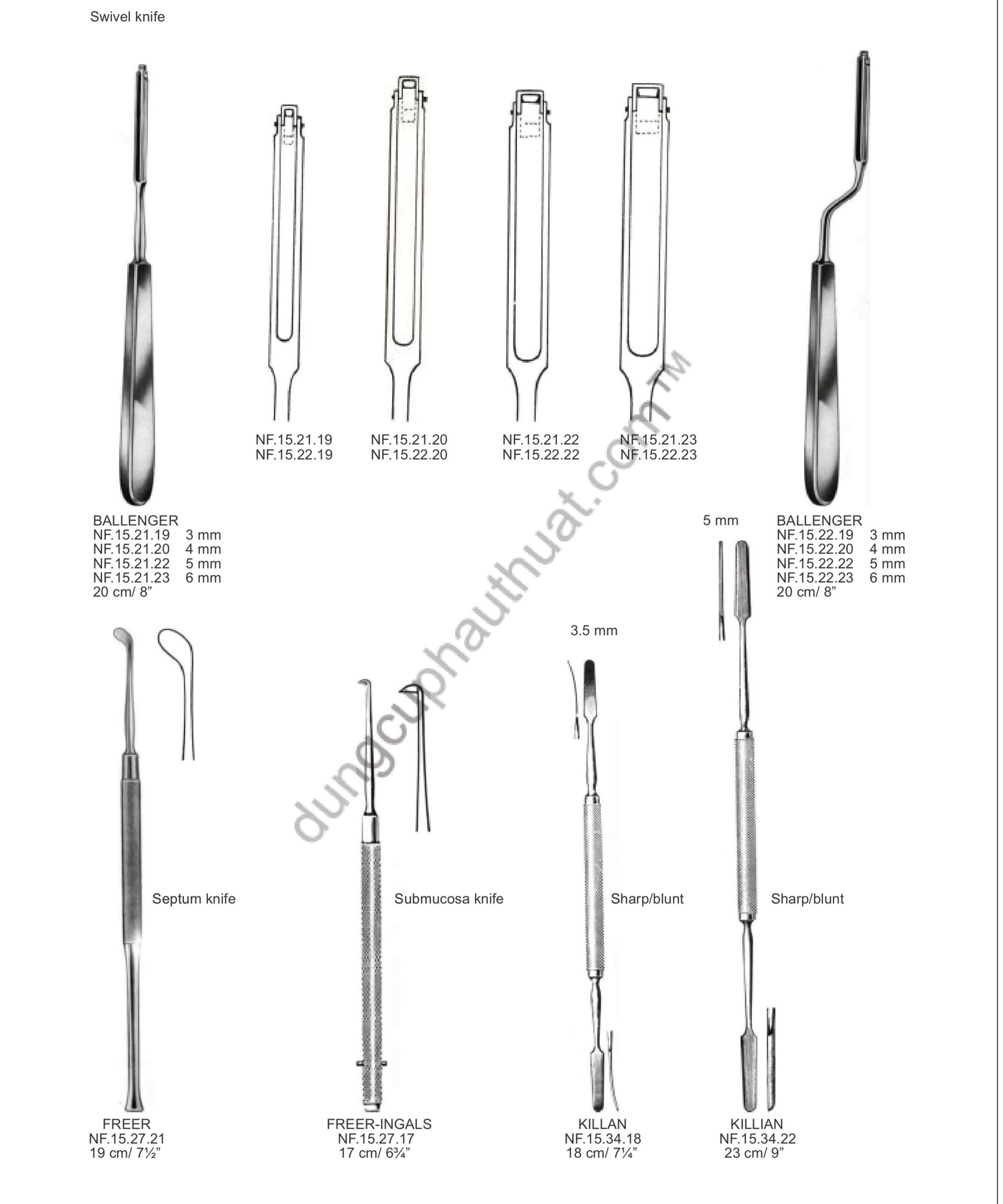 Dụng Cụ Ballenger: Dao xoay (swivel knife) nổi tiếng để cắt sụn vách ngăn theo đường cong.