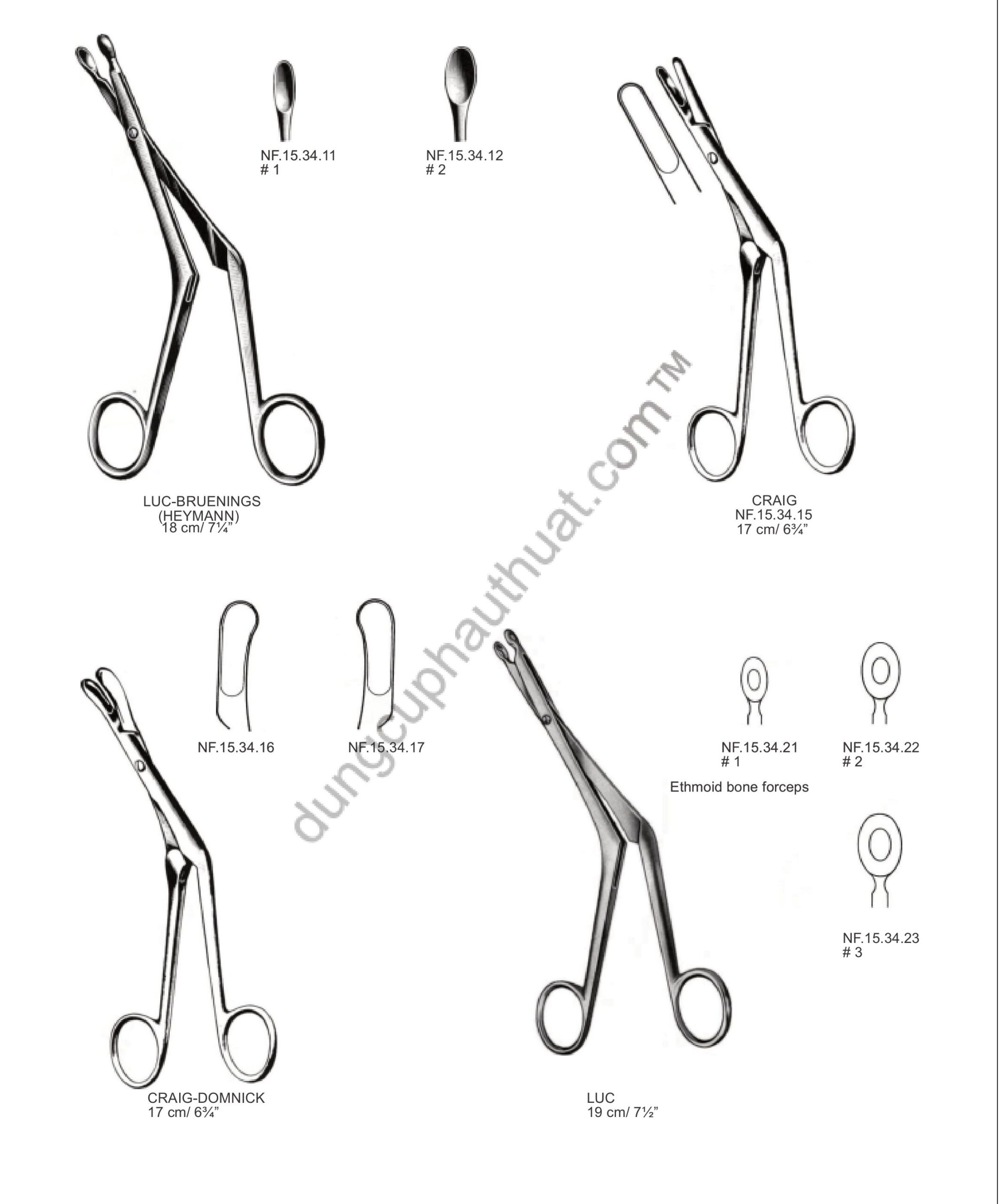 Kìm Luc (Luc Forceps): Có hàm hình bầu dục rỗng, dùng để gắp bỏ các mảnh sụn hoặc xương vách ngăn đã được cắt rời.