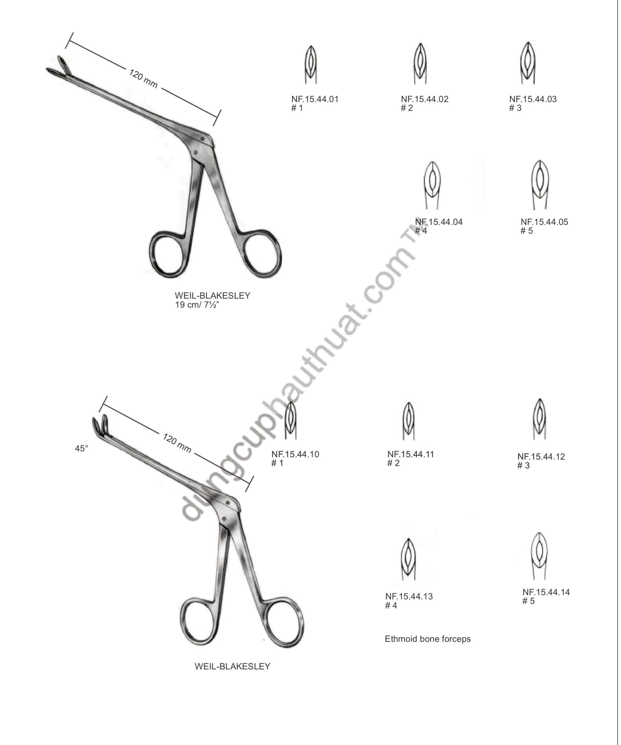 Dụng Cụ Blakesley / Weil-Blakesley: Kẹp gắp mô xoang và xương sàng (có nhiều góc độ 0°, 45°, 90°).
