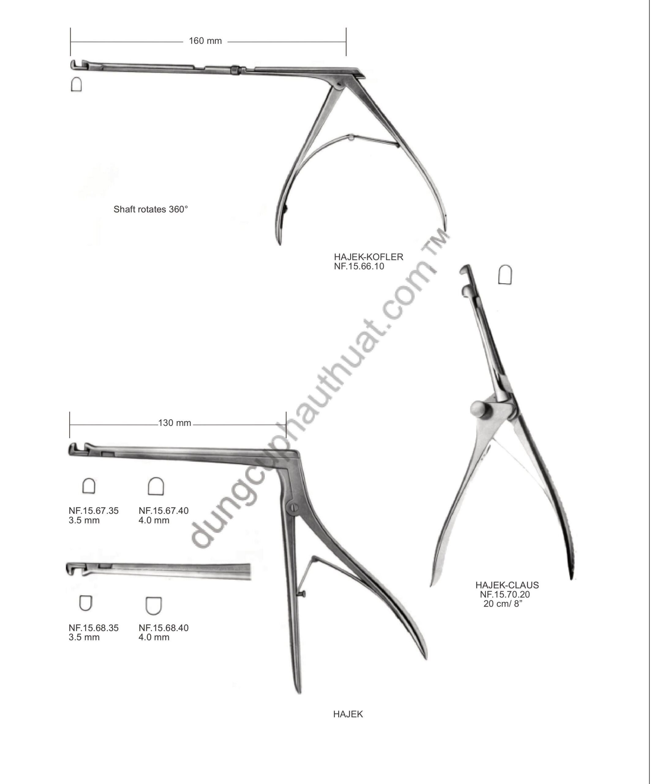 Dụng Cụ Hajek-Kofler / Hajek-Claus: Kẹp bấm cắt xương vách ngăn hoặc sàn sọ.