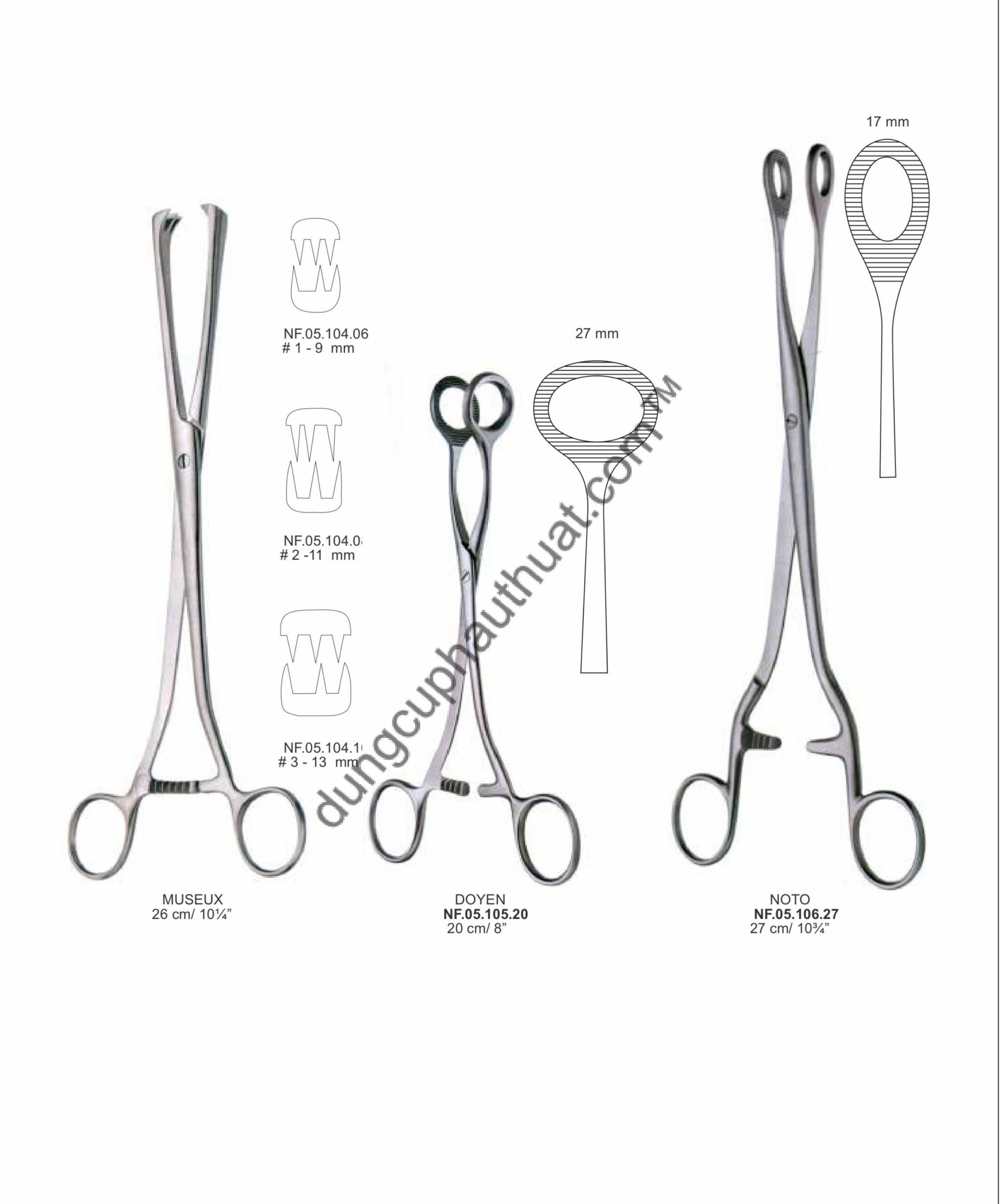 Kẹp Museux / Jacobs có 2 đến 4 răng mỗi bên, dùng khi cổ tử cung quá to, xơ cứng cần lực kéo cực lớn trong phẫu thuật cắt tử cung.