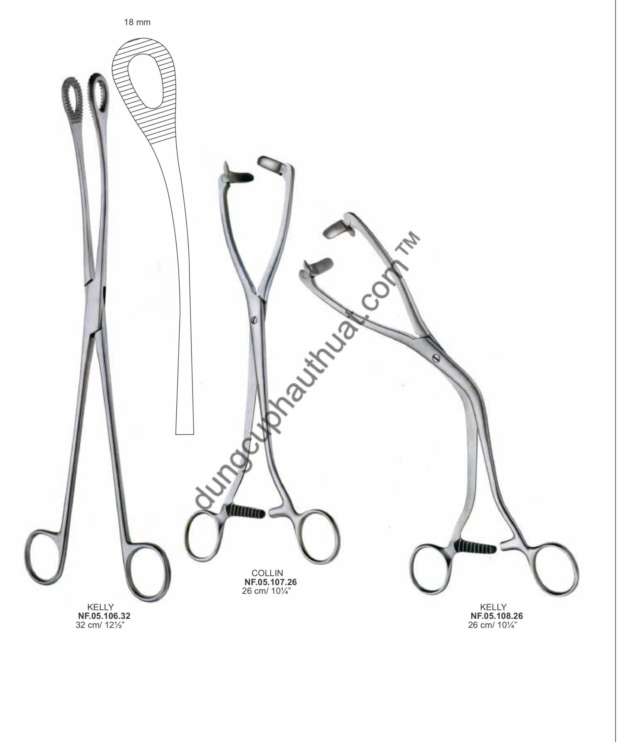 Chiều dài (Length) thường dài hơn so với dụng cụ ngoại khoa thông thường để thao tác sâu trong ổ chậu.