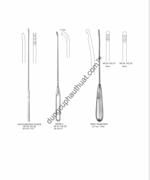 Dụng Cụ Recamier / Blake / Bumm có loại cứng rigid để nạo mạnh và loại mềm Malleable để nạo an toàn theo hình dáng tử cung.